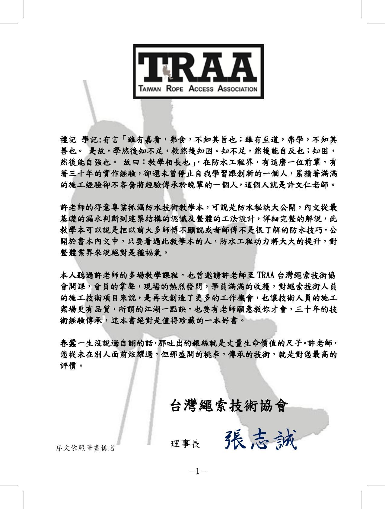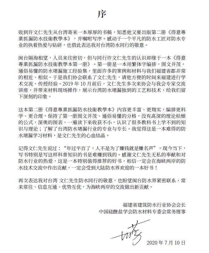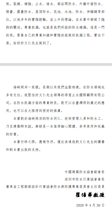 所以 得意專業抓漏防水技術教學本 出版之後,不但在台灣防水界受到極大的好評,還很快地引起大陸防水同業與協會的注意,並邀請本書作者前往多次交流。