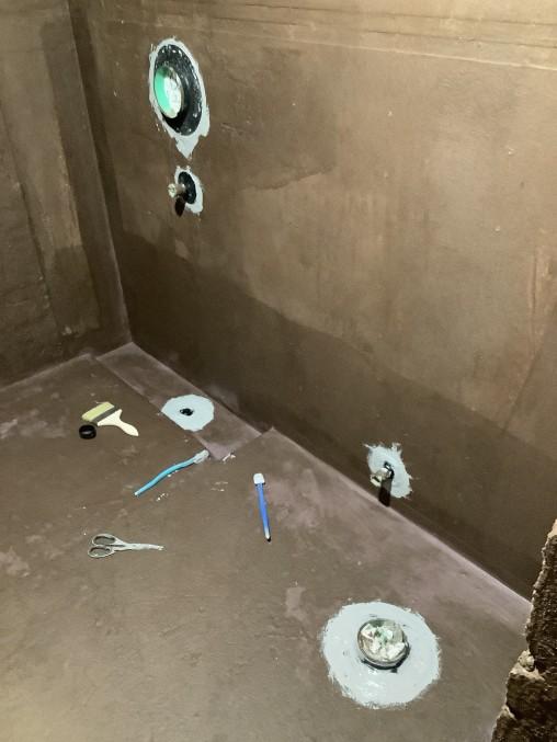 ◎採用得意止水墩以及管邊防水套,在浴室防水施工完畢之後,還可以放水、積水,測試防水層有無問題。