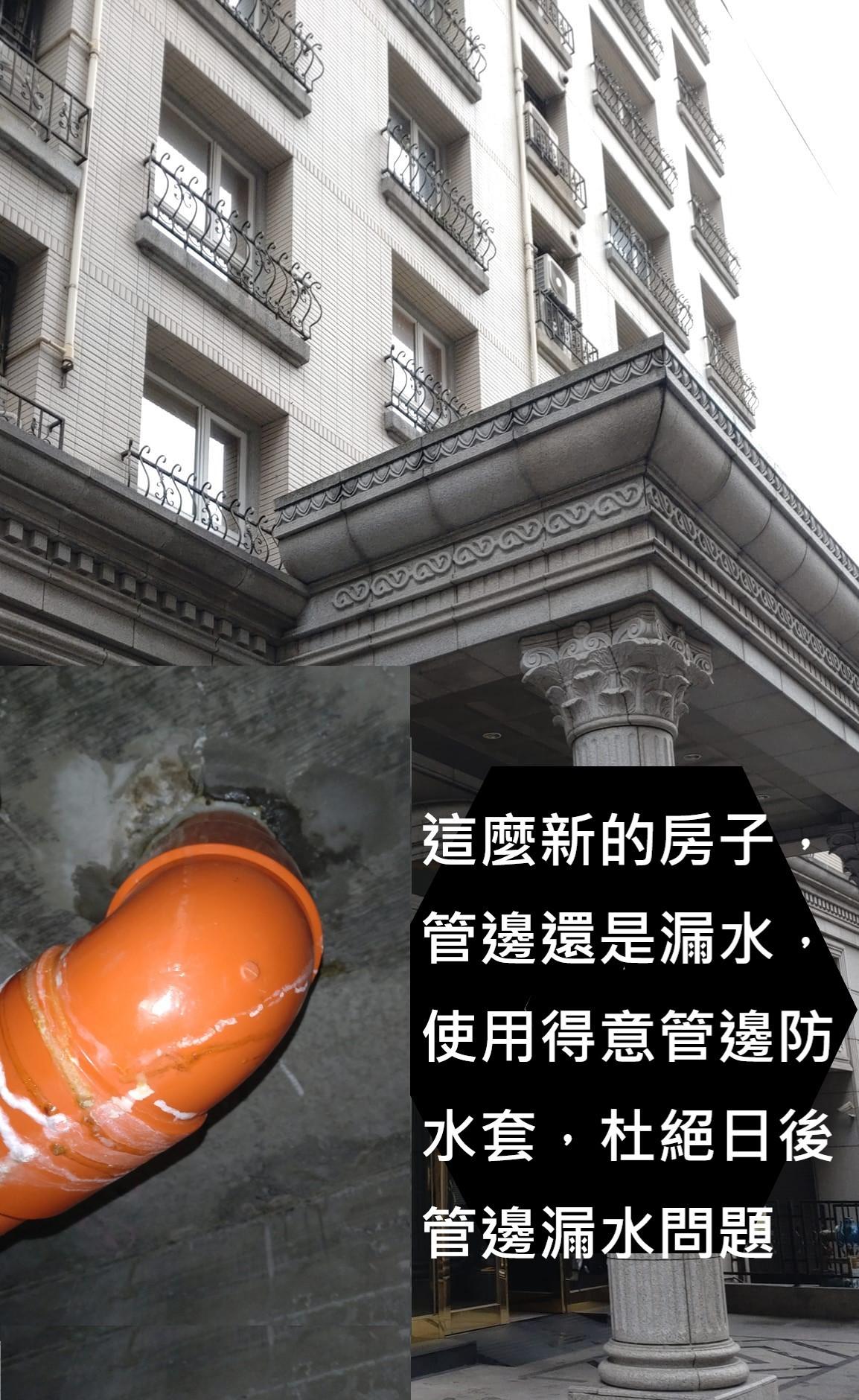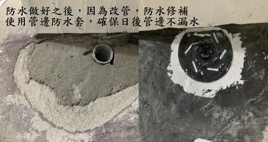 很多漏水都出現在管邊-例如排水管邊漏水、化糞管邊漏水,很多浴室只是因為管邊漏水,就要將地板打除,做好防水,再貼地磚,還要花一大筆費用